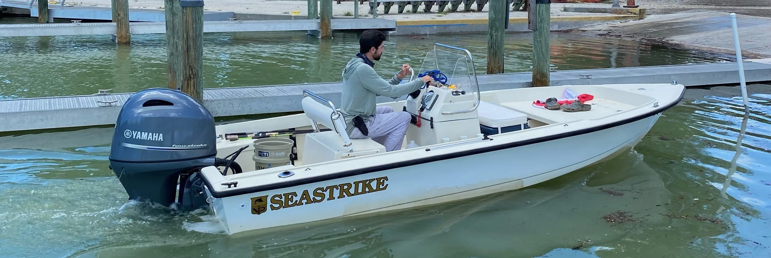 This boat redefines fishable areas. Places where most boats cannot go this boat can! It can float in ankle deep water and is a joy to fish from whether you are targeting bonefish in Biscayne Bay or Redfish in Flamingo. This boat can fish 2 anglers max plus the guide and is designed for one purpose and one purpose only and that is to catch fish. It boasts a 60hp Yamaha 4 stroke with a top speed of 35mph fully loaded to get to where the fish are quick. The hull design is quiet and made to stalk up on wary fish as is the case in sightfishing.